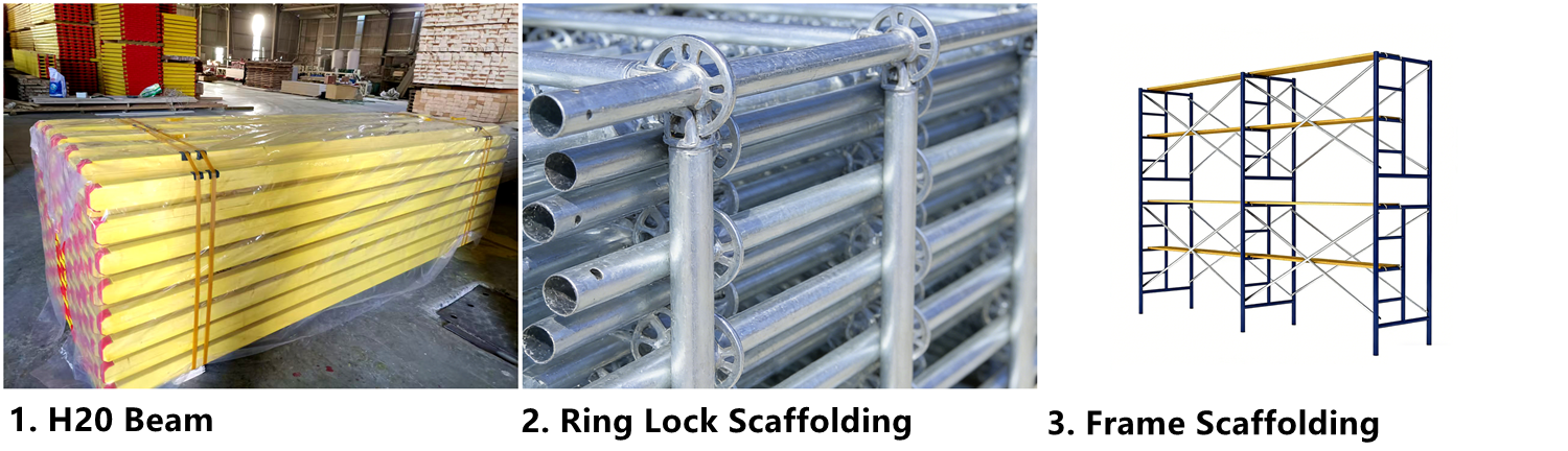 Кроме того, мы производим полный спектр опорных систем, включая опалубочные балки H20, стальные опоры, штативы, вилы и строительные леса.